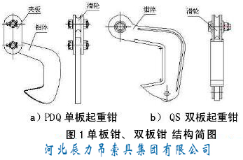 PDQ型單板起重鉗與QS型雙板起重鉗產(chǎn)品性能特點和結(jié)構(gòu)簡圖